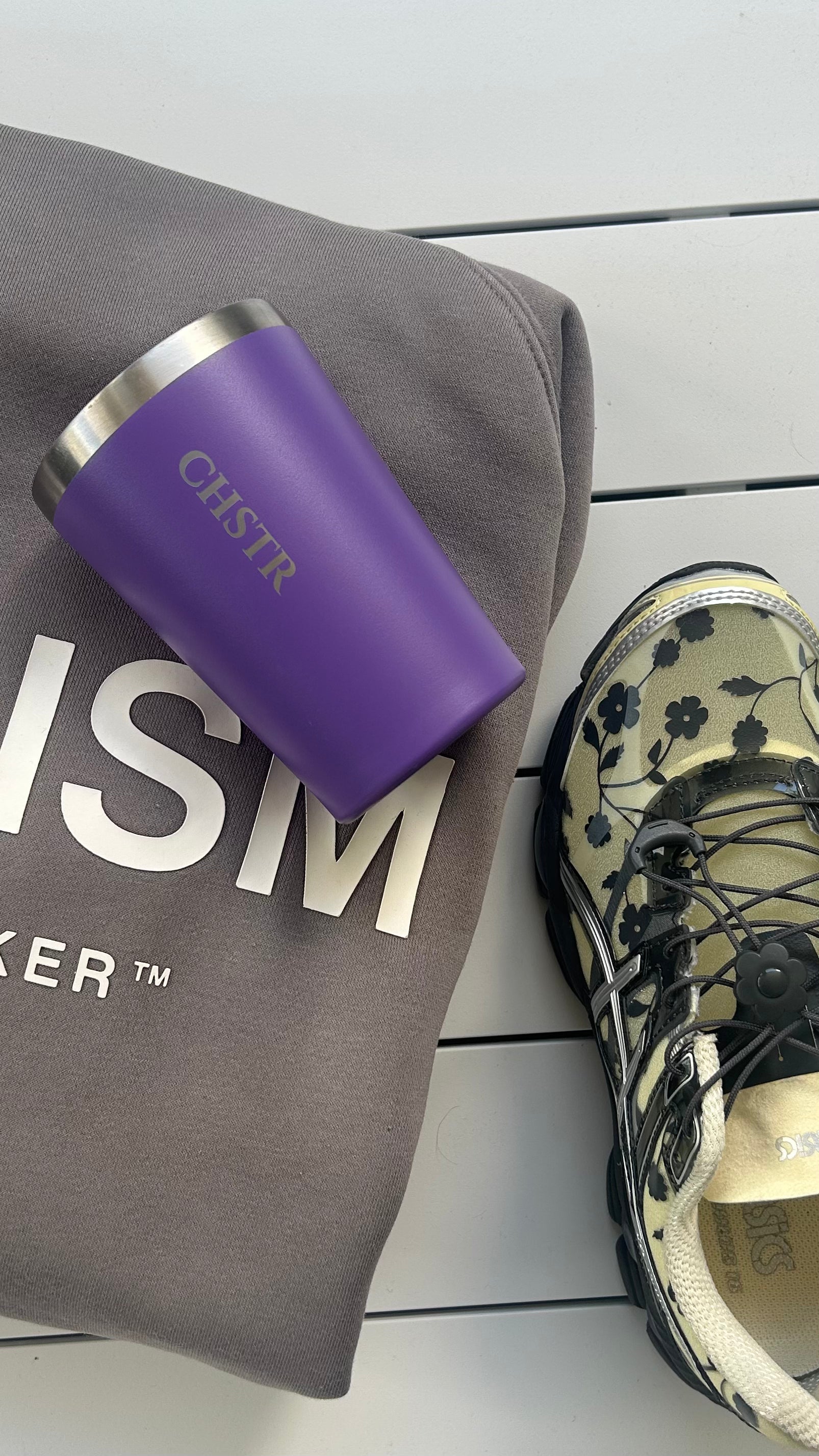 With a sleek matte finish and practical sliding lid, your CHSTR tumbler keeps drinks at the perfect temperature while fitting effortlessly in your hand or bag. Whether it's your daily flat white or an iced latte on the go, the smaller size built for simplicity and style.